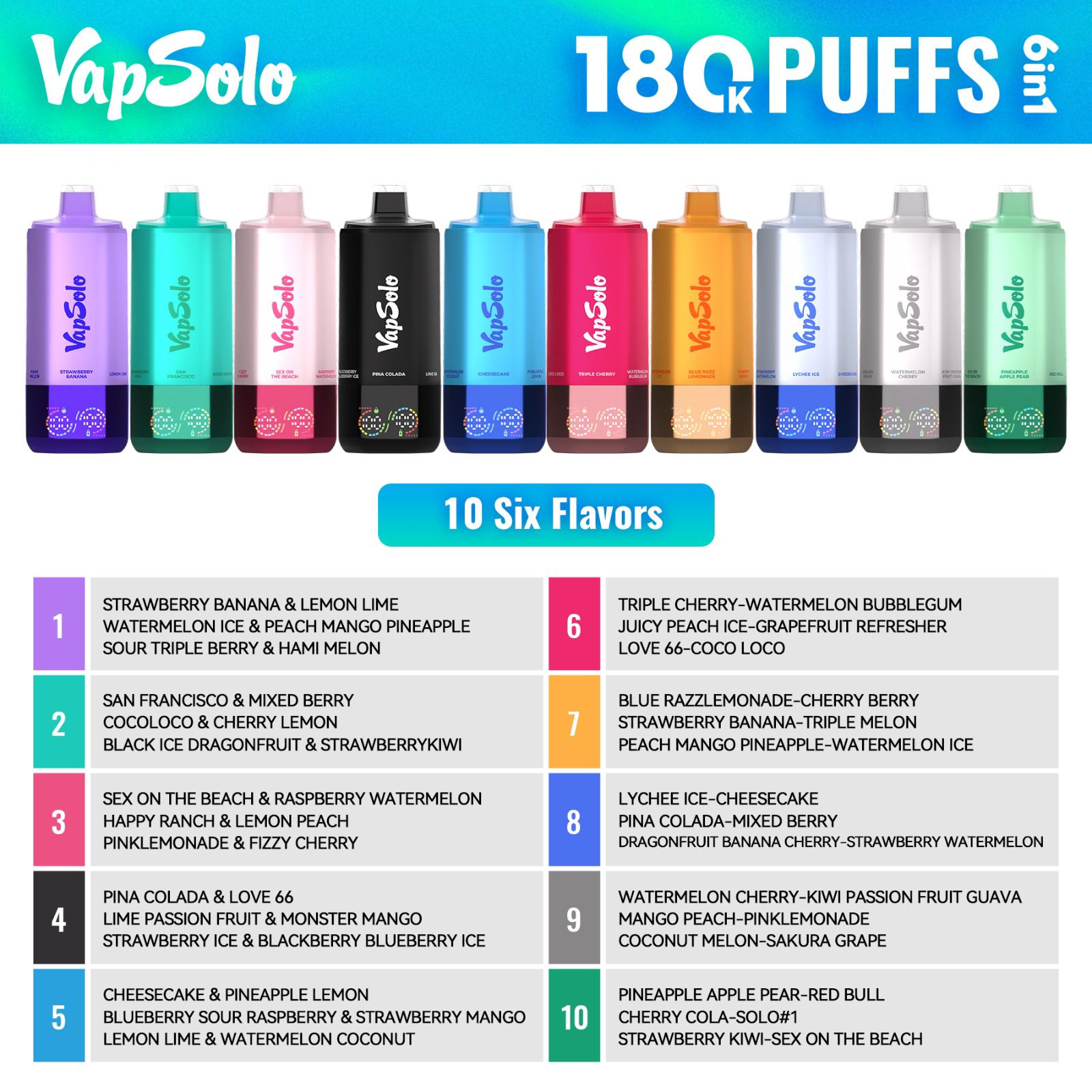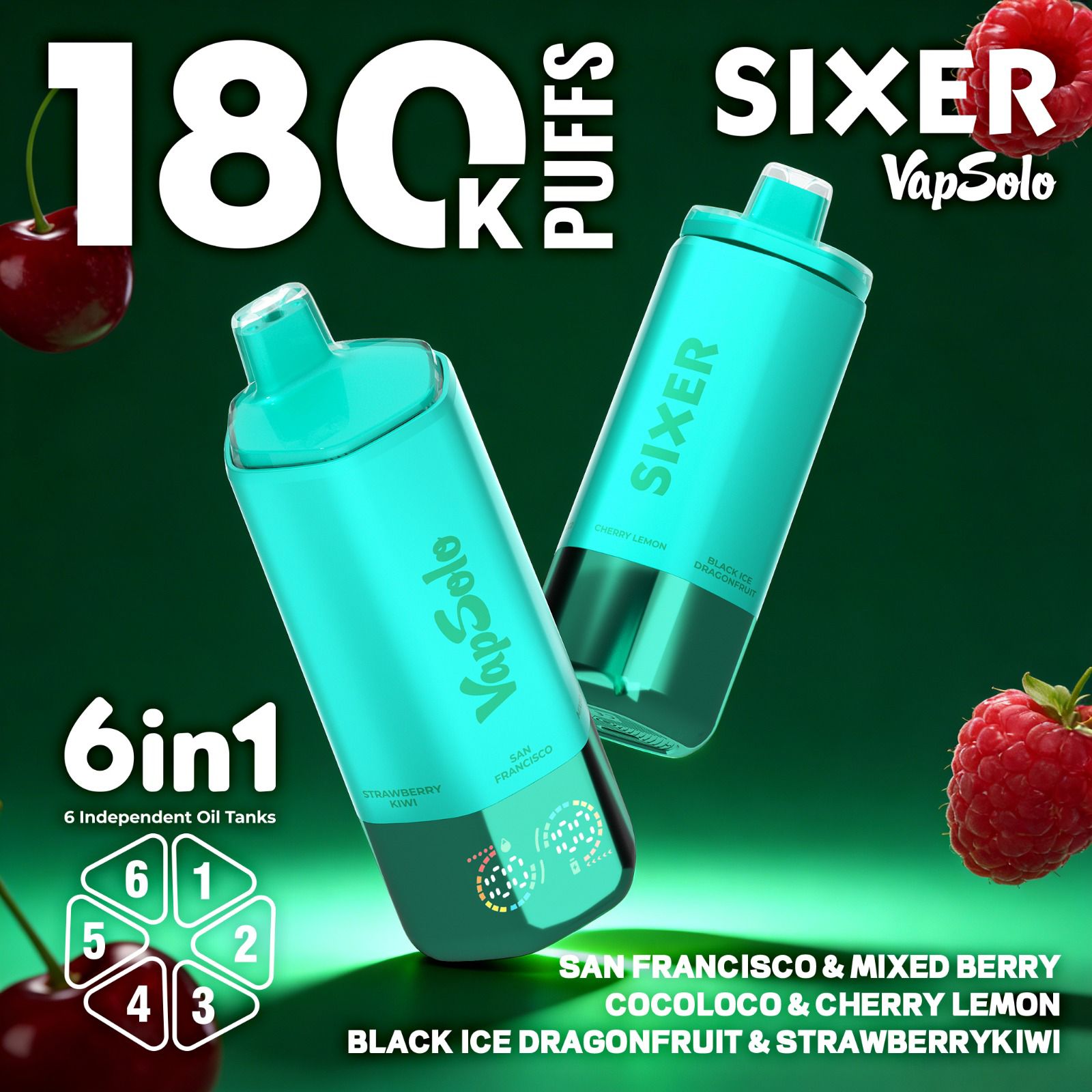 VAPSOLO SIXER 180k 6en1 | 180.000 caladas 6 sabores en 1